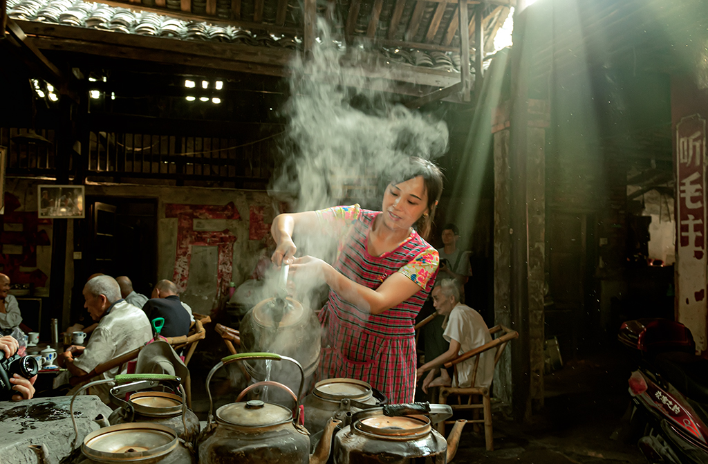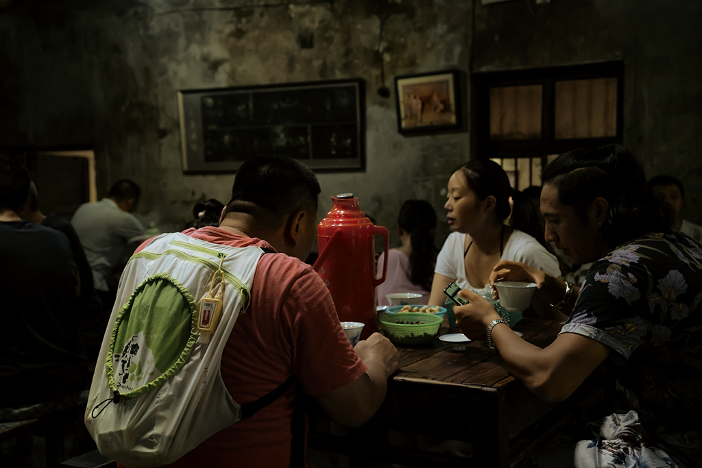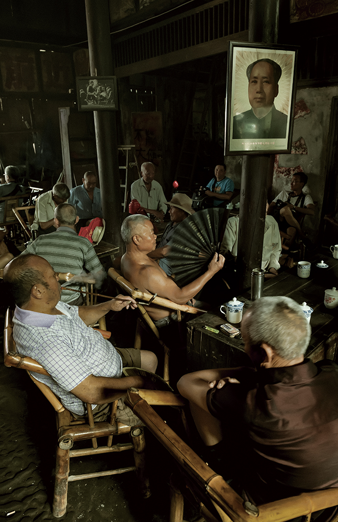 這些影像主要拍攝于四川、重慶、綿陽等地。這些茶館很簡陋、破敗,有的是故意模仿前時代茶館風格,有的是無奈選擇地價便宜的地段,維持建立這樣風格的茶館,是否懷舊?是否寄托某種風情?就待各自去揣摩。在成都茶館、重慶交通茶館,我都是在那里呆一整天,前來喝茶的人絡繹不絕,人來人往……
