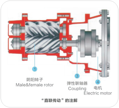 ②結(jié)構(gòu)緊湊、傳動(dòng)效率高,能有效提高空壓機(jī)的效率,節(jié)省能源;