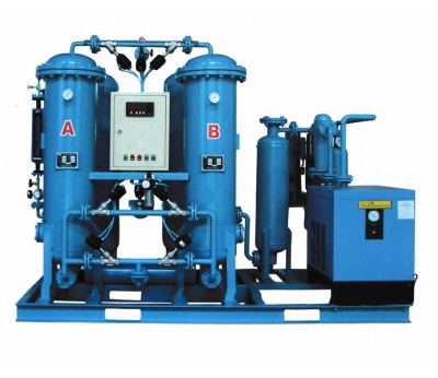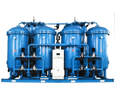 由于碳分子篩對氧的吸附容易隨壓力的不同兩者有明顯差異,降低壓力,即可解吸碳分子篩吸附的氧分子,使碳分子篩再生,得以重復(fù)循環(huán)使用。采用兩個吸附干塔流程,一塔吸附產(chǎn)氮,一塔解吸再生,通過PLC程序控制氣動閥的啟閉,使兩塔循環(huán)交替,連續(xù)產(chǎn)出高品質(zhì)氮?dú)狻?/span>